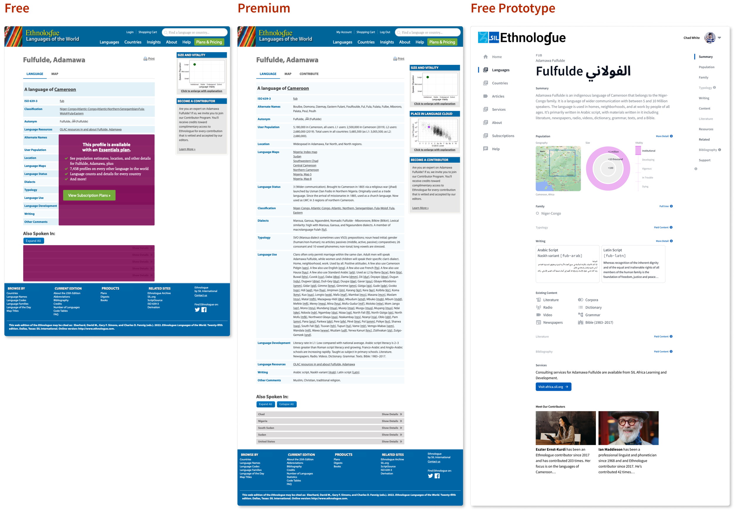 Ethnologue.com free, premium, and prototype versions